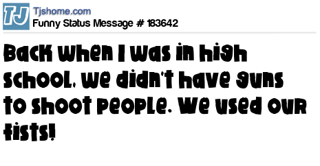 X says Back when I was in high school, we didn't have guns to shoot people. We used our fists!