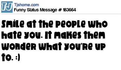 - # 113795 Remember to smile at your enemies. It makes you the bigger person, plus your smile will be prettier than their frown. They hate that.