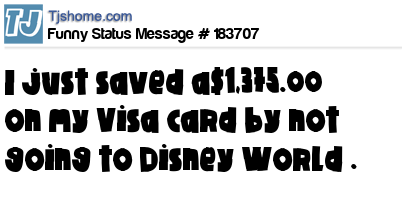 X says I just saved a$1,375.00 on my Visa card by not going to Disney World .