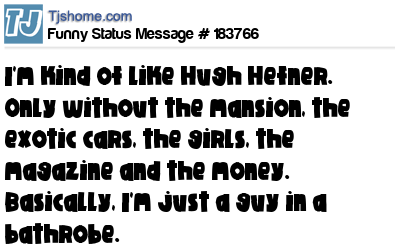 - # 164513 I'm like Hugh Hefner....minus the mansion, the exotic cars, the girls, the magazine and the money. So basically, I have a robe.