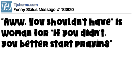 X says "Aww. You shouldn't have" is woman for "if you didn't, you better start praying"