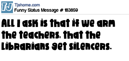 X says All I ask is that if we arm the teachers, that the librarians get silencers.
