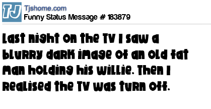 X is Last night on the TV I saw a blurry dark image of an old fat man holding his willie. Then I realised the TV was turn off.