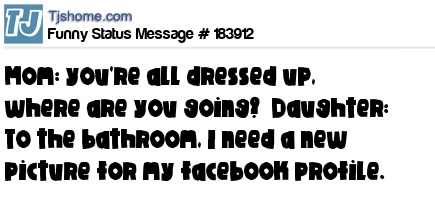 X says Mom: you're all dressed up, where are you going?  Daughter: To the bathroom, I need a new picture for my facebook profile.