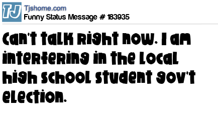 X says Can't talk right now. I am interfering in the local high school student gov't election.