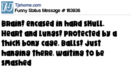 X says Brain? encased in hard skull. Heart and lungs? protected by a thick bony cage. Balls? just hanging there, waiting to be smashed