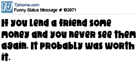 - # 11858 If you lend someone $20, and never see that person again; it was probably worth it.