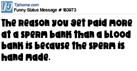 X is The reason you get paid more at a sperm bank than a blood bank is because the sperm is hand made.