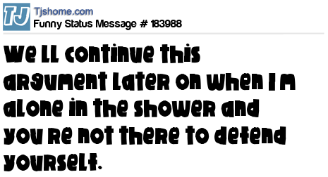 X says We’ll continue this argument later on when I’m alone in the shower and you’re not there to defend yourself.