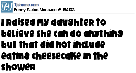 X says I raised my daughter to believe she can do anything but that did not include eating cheesecake in the shower