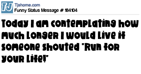 X says Today I am contemplating how much longer I would live if someone shouted "Run for your life!"