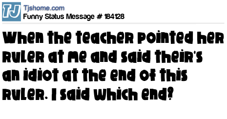 X is When the teacher pointed her ruler at me and said their's an idiot at the end of this ruler. I said which end?