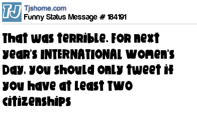 X says That was terrible. For next year's INTERNATIONAL Women's Day, you should only tweet if you have at least TWO citizenships