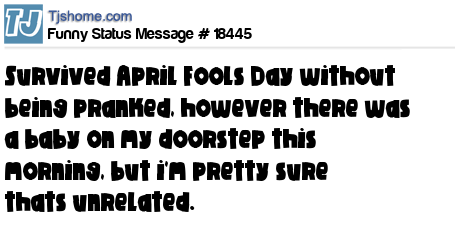 X  survived April Fools Day without being pranked, however there was a baby on my doorstep this morning, but i'm pretty sure thats unrelated.