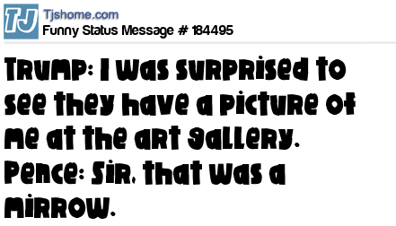 X is Trump: I was surprised to see they have a picture of me at the art gallery. Pence: Sir, that was a mirrow.