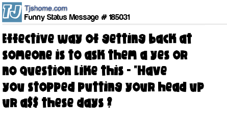- # 17507 effective way of getting back at someone is to ask them a yes or no question like this - "Have you stopped putting your head up ur a$$ these days ?"