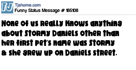 X says None of us really knows anything about Stormy Daniels other than her first pet's name was Stormy & she grew up on Daniels street.