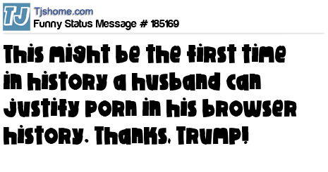 X is This might be the first time in history a husband can justify porn in his browser history. Thanks, Trump!