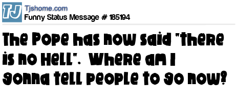 X says The Pope has now said "there is no Hell". Where am I gonna tell people to go now?