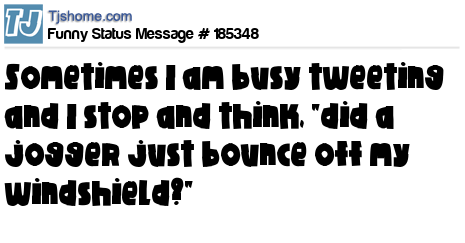 X says Sometimes I am busy tweeting and I stop and think, "did a jogger just bounce off my windshield?"