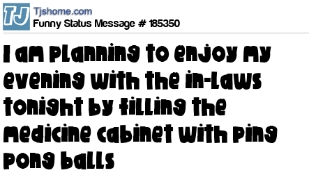 X says I am planning to enjoy my evening with the in-laws tonight by filling the medicine cabinet with ping pong balls