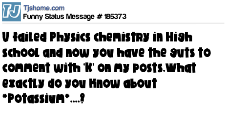 X says U failed Physics chemistry in High school and now you have the guts to comment with 'K' on my posts.What exactly do you know about *Potassium*....?