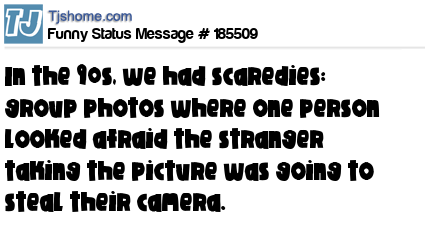 X says In the 90s, we had scaredies: group photos where one person looked afraid the stranger taking the picture was going to steal their camera.