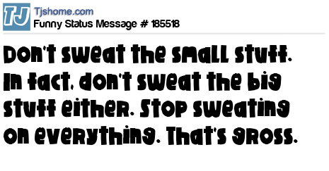 - # 134336 Don't sweat the small stuff. Don't sweat the medium or large stuff either. Stop perspiring on everything. Take your sweaty butt elsewhere.