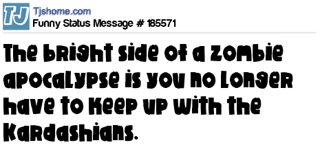 X says The bright side of a zombie apocalypse is you no longer have to keep up with the Kardashians.