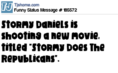 - # 185108 None of us really knows anything about Stormy Daniels other than her first pet's name was Stormy & she grew up on Daniels street.