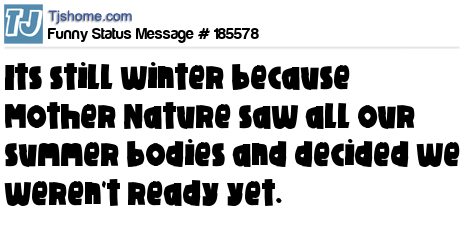 X says Its still winter because Mother Nature saw all our summer bodies and decided we weren't ready yet.
