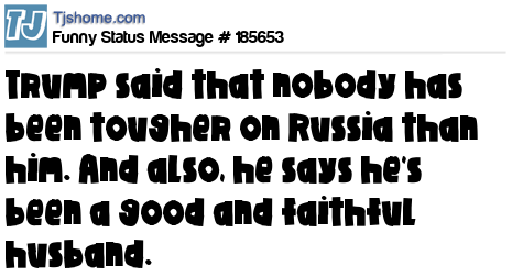 X says Trump said that nobody has been tougher on Russia than him. And also, he says he's been a good and faithful husband.
