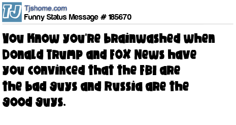 X is You know you're brainwashed when Donald Trump and FOX News have you convinced that the FBI are the bad guys and Russia are the good guys.