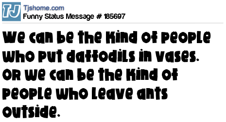 X says We can be the kind of people who put daffodils in vases. Or we can be the kind of people who leave ants outside.