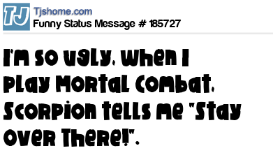 X is I'm so ugly, when I play Mortal Combat, Scorpion tells me "Stay Over There!".