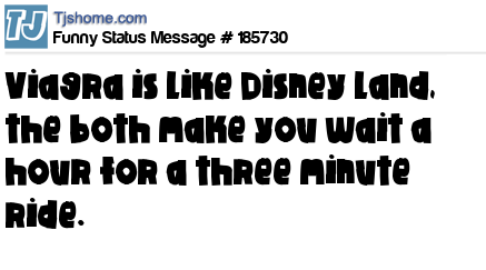 X is Viagra is like Disney land, the both make you wait a hour for a three minute ride.