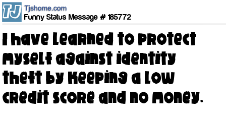 - # 86871 Someone stole my wife identity and her credit score went up. Even they couldn't spend that much.