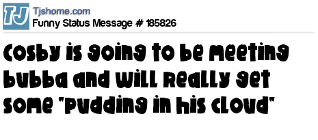 X is Cosby is going to be meeting bubba and will really get some "pudding in his cloud"