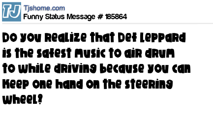 - # 192228 If you ever feel like air-drumming while driving always play a Def Leppard song. That way you can still keep one hand on the wheel.