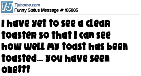 - # 114532 Why doesn't someone invent a clear toaster? Then you could see how toasted your toast is while it's toasting.