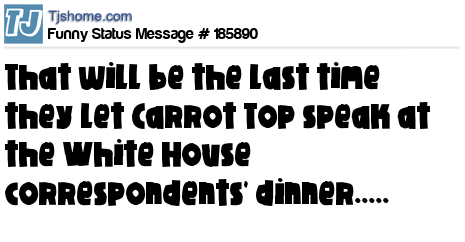 - # 185892 Carrot top gave the greatest performance the White House correspondents' dinner has ever seen. Greatest ever!