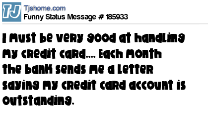 X is I must be very good at handling my credit card.... Each month the bank sends me a letter saying my credit card account is outstanding.