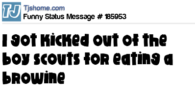 - # 12026 knows why boy scouts don't sell cookies. Because nobody would eat a cookie with 'BS' on it.