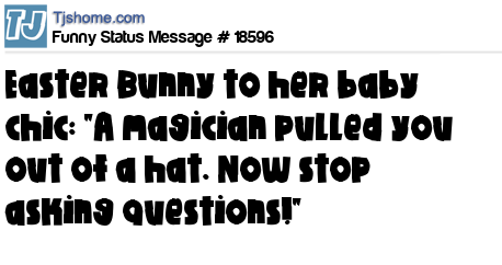 X Easter Bunny to her baby chic: "A magician pulled you out of a hat. Now stop asking questions!"