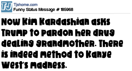 X says Now Kim Kardashian asks Trump to pardon her drug dealing grandmother. There is indeed method to Kanye West's madness.