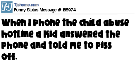 X is When I phone the child abuse hotline a kid answered the phone and told me to piss off.