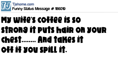 X is My wife's coffee is so strong it puts hair on your chest........ And takes it off if you spill it.