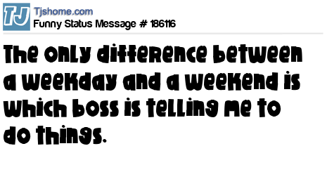 X says The only difference between a weekday and a weekend is which boss is telling me to do things.