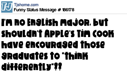 X I'm no English major, but shouldn't Apple's Tim Cook have encouraged those graduates to "think differently"??