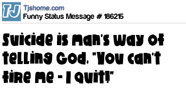 - # 24160 Suicide is away of telling God, You can't fire me I quit !!!!!